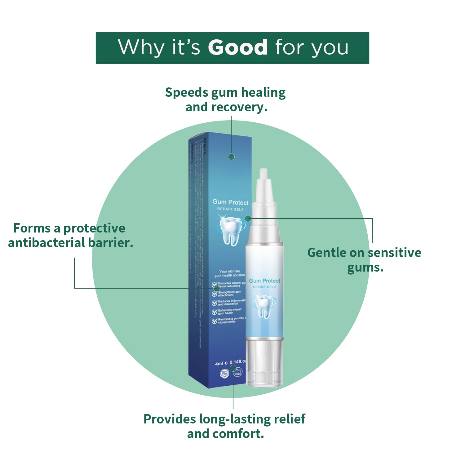 Soothe and heal your gums in just days. A simple application of our Gum Protect Repair Gel reduces swelling, discomfort, and irritation. Say goodbye to sore gums and hello to a protected, healthy smile—naturally restored and refreshed, without harsh treatments or irritation.